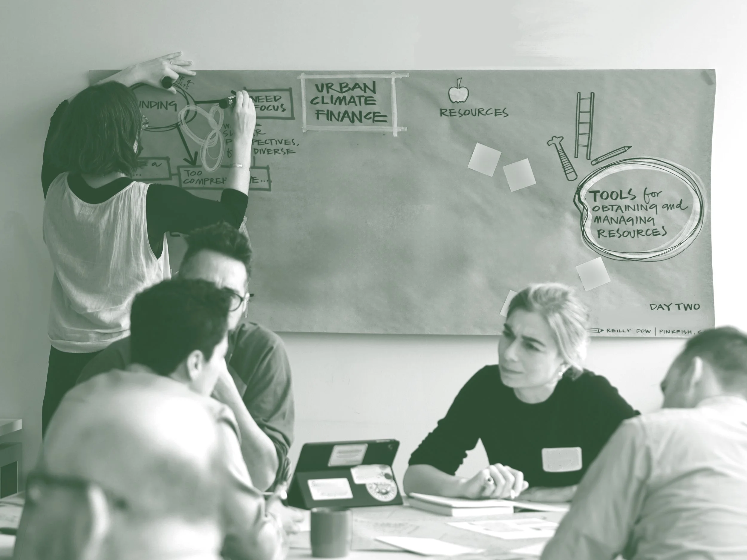 As scribes, we bring deep listening, a systems perspective, and a quick hand to the room, to translate what we hear into visible maps on the wall.